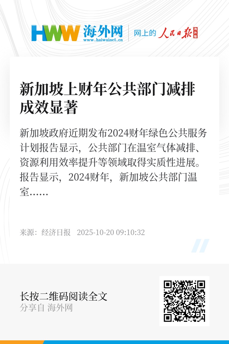 新加坡政府近期发布2024财年绿色公共服务计划报告显示,公共部门在温室气体减排、资源利用效率提升等领域取得实质性进展。