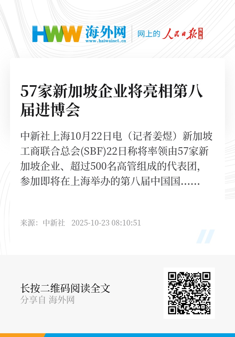 进博会是新加坡企业进入中国市场、拓展业务版图的关键渠道。自2018年首届进博会以来,新加坡企业通过这一平台累计达成超过29.3亿元人民币的贸易额。第八届进博会,新加坡总展览面积达1213平方米,将重点展示其在服务贸易、食品及农产品、消费品等领域的独特优势。