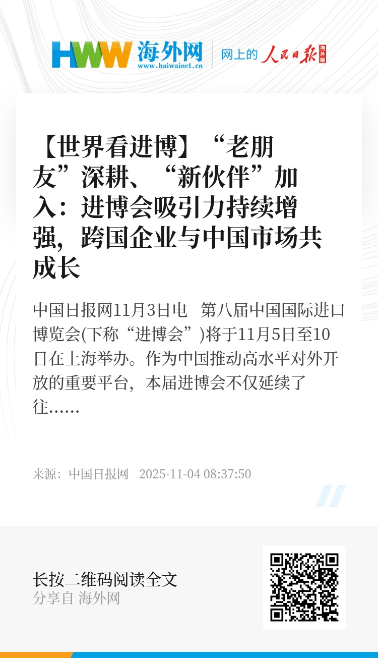 众多跨国公司在进博会搭建全球枢纽、将展品转化为商品,长期参与进博会的“老朋友”更是用实际行动表达了对这一平台的认可。