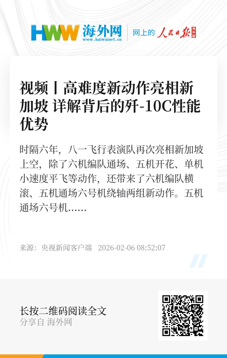 时隔六年,八一飞行表演队再次亮相新加坡上空,除了六机编队通场、五机开花、单机小速度平飞等动作,还带来了六机编队横滚、五机通场六号机绕轴两组新动作。