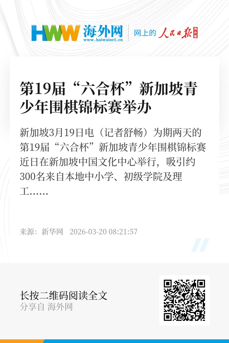 “六合杯”是新加坡围棋界的重要赛事。新加坡中国文化中心长期与新加坡围棋协会合作,通过赛事与课程等形式,为青少年搭建兼具文化传承与竞技交流的平台。双方表示,未来将继续深化合作。