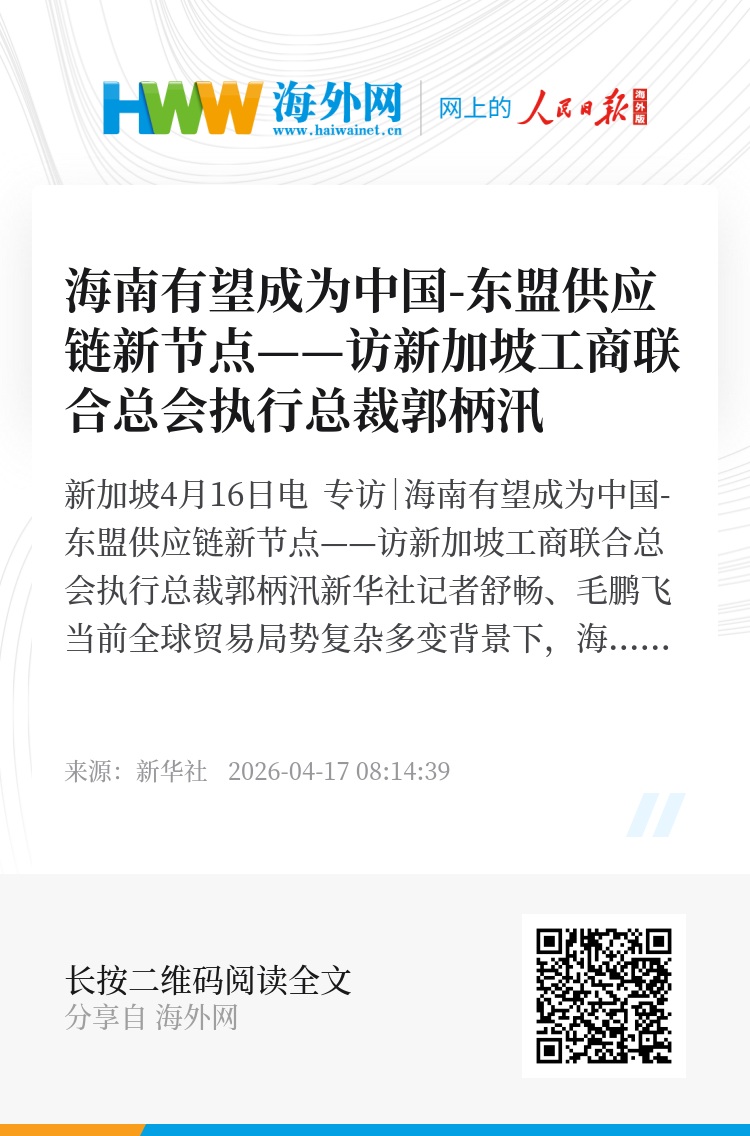 新华社新加坡4月16日电 专访|海南有望成为中国-东盟供应链新节点——访新加坡工商联合总会执行总裁郭柄汛