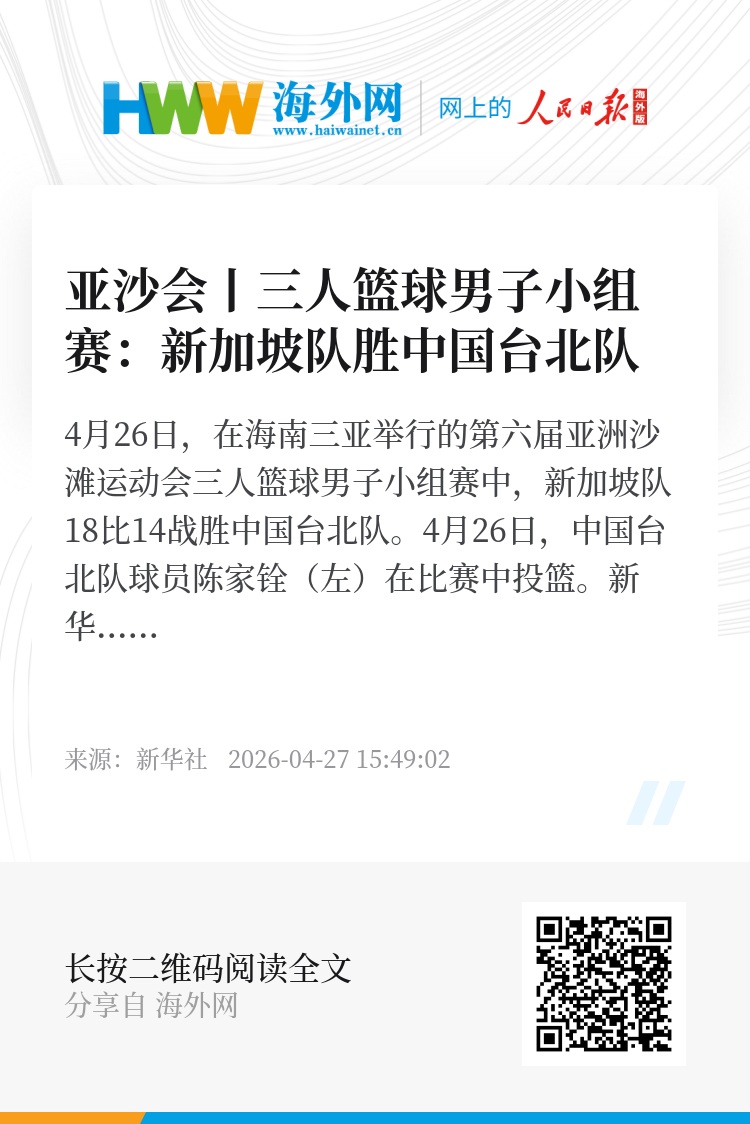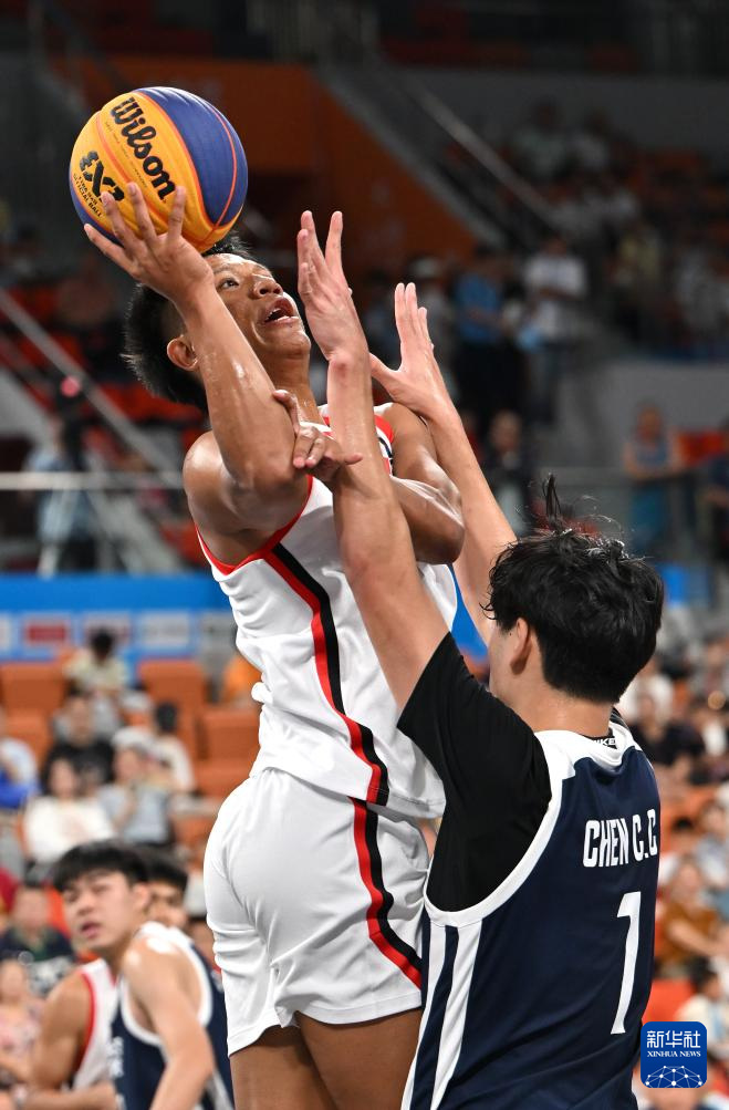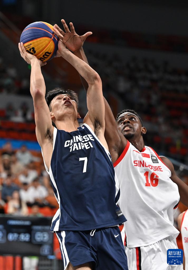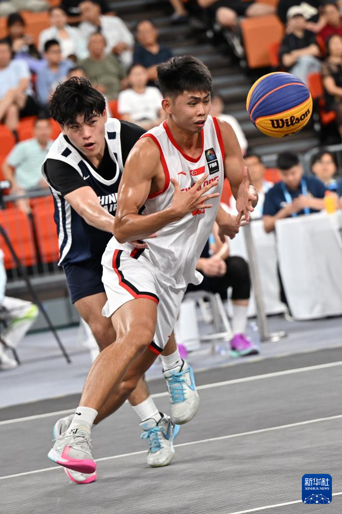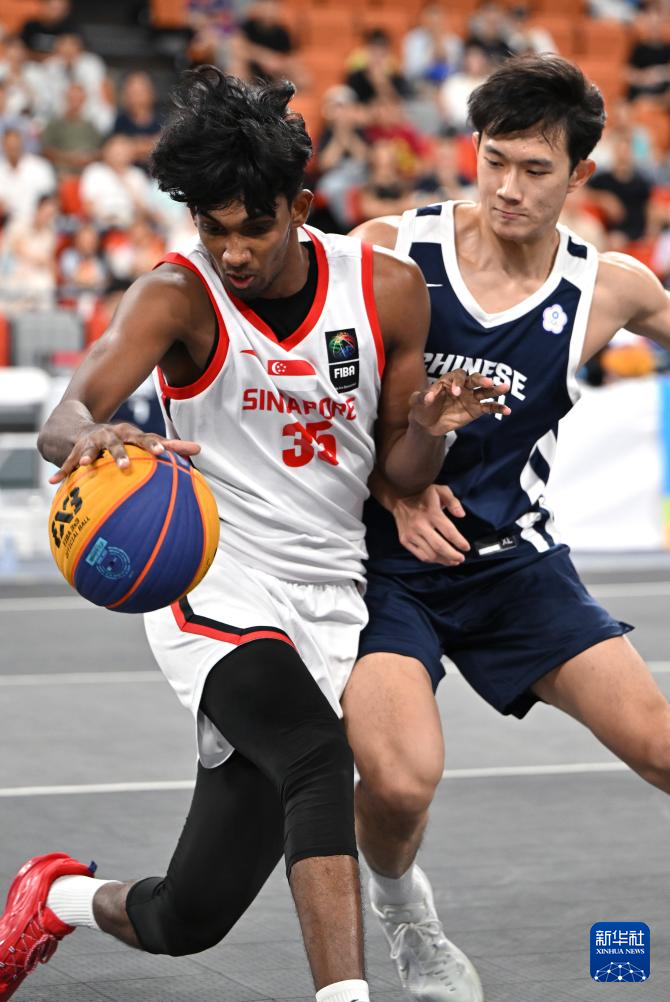 4月26日,在海南三亚举行的第六届亚洲沙滩运动会三人篮球男子小组赛中,新加坡队18比14战胜中国台北队。